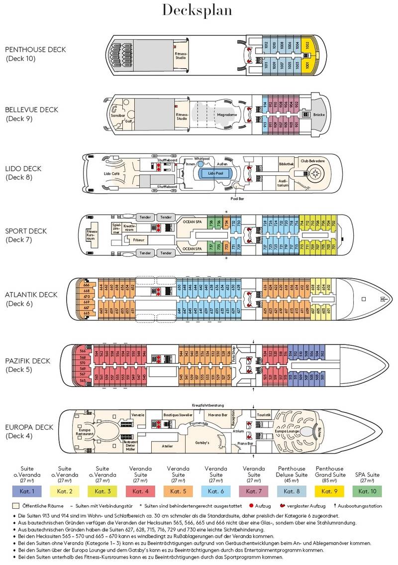 Neben perfektem Service bietet die deutschsprachige MS EUROPA auch kulinarisch wahre Höhepunkte. Von sportlichen Aktivitäten bis zu guter Unterhaltung an Bord mit renommierten Künstlern und organisierten Landausflügen oder den unterschiedlichsten Themenreisen wird für alle Ansprüche etwas geboten.