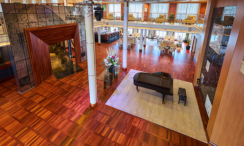 Die öffentliche Räume auf Deck 5, 6, der Pool und das Sportsdeck sind großzügig bemessen, wie mit einem Tennisplatz in Originalabmessungen. Zahlreiche Restaurants, Bars, ein Fitness Center, Spa und weitere Einrichtungen wie ein Auditorium oder eine am Heck ausklappbare Marina stehen den Besitzern zur Verfügung.